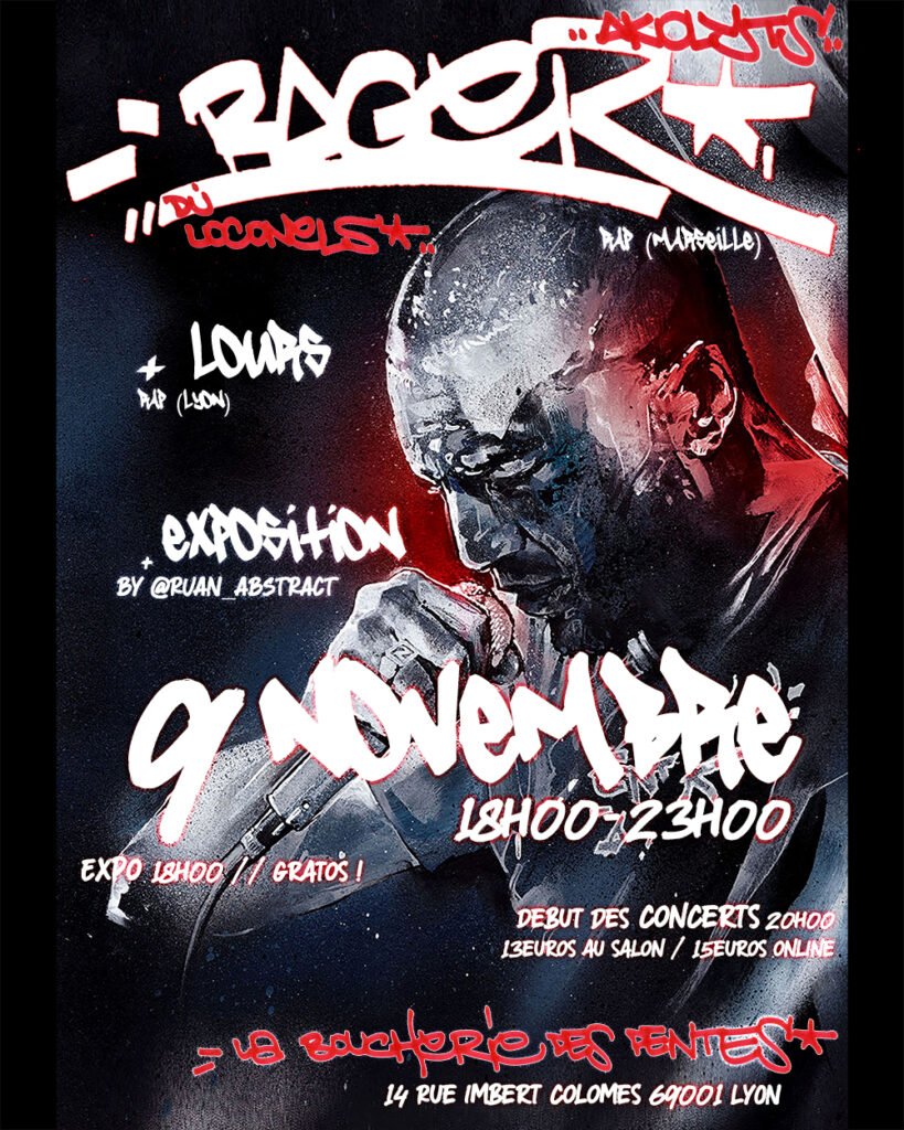 LOURS, rappeur émergeant du 69, chauffera le micro à partir de 20h avant de laisser la place à Marseille et au rappeur RAGER qui viendra nous présenter son nouvel album, LE SON DE LA VEINE